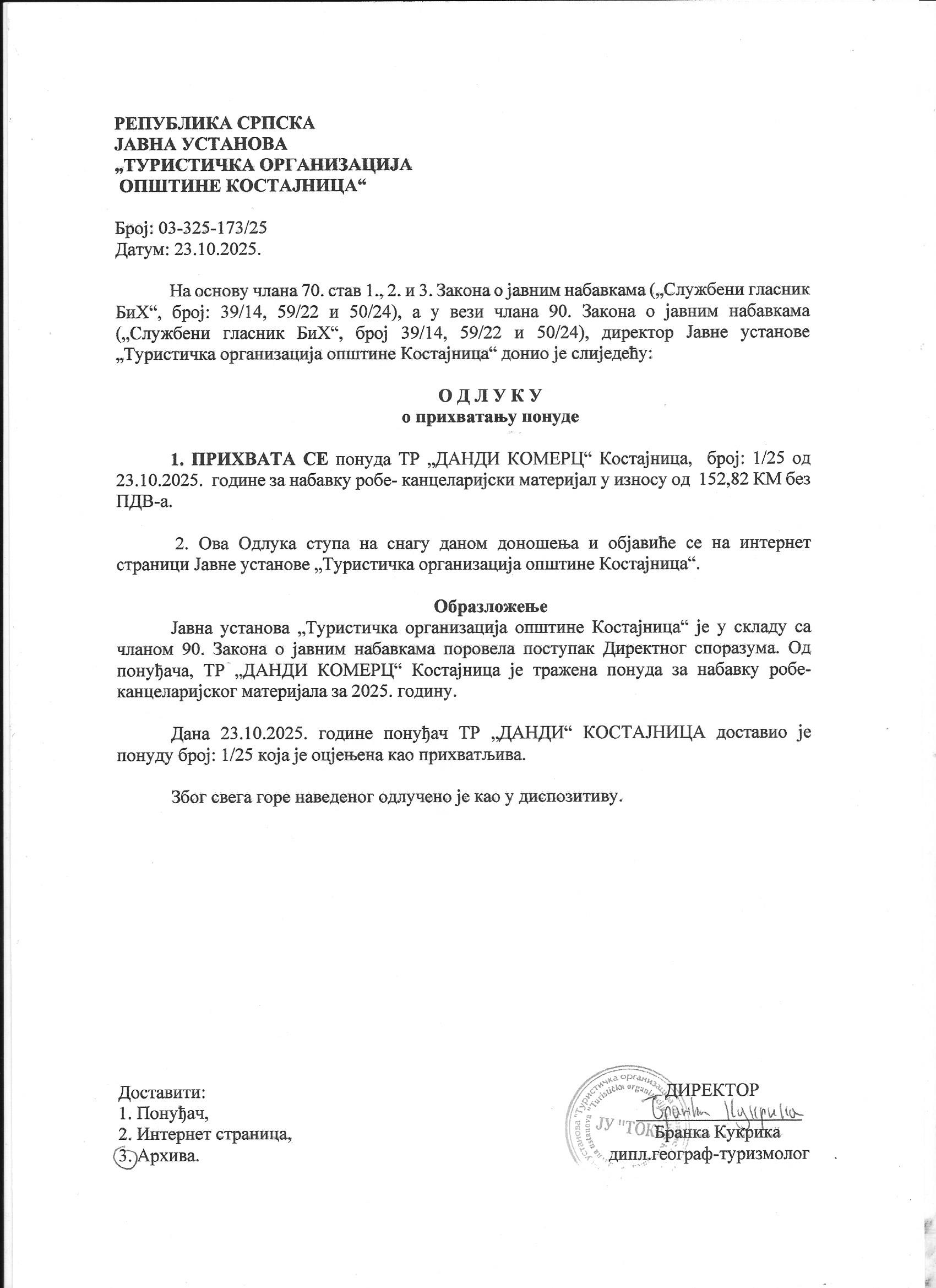 Одлука о прихватању понуде – ТР ДАНДИ КОМЕРЦ