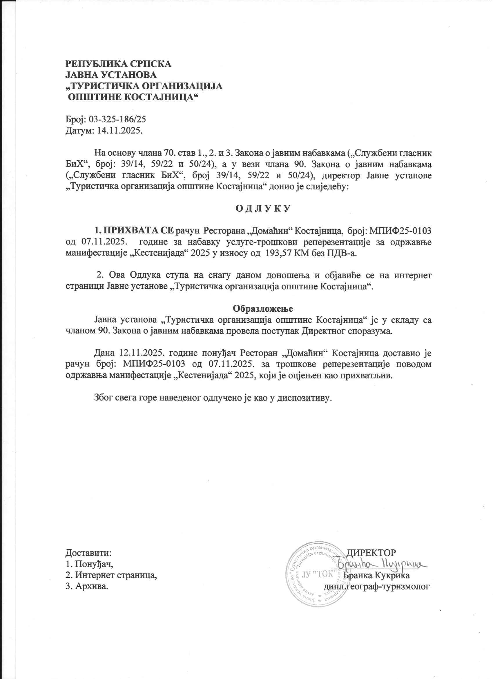Одлука о прихватању понуде – РЕСТОРАН ДОМАЋИН