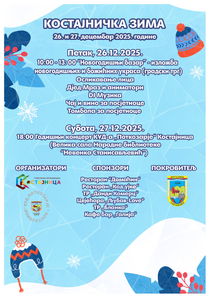 Забавна манифестација „Костајничка зима“ 2025 одржаће се 26. и 27 децембра 2025. године.