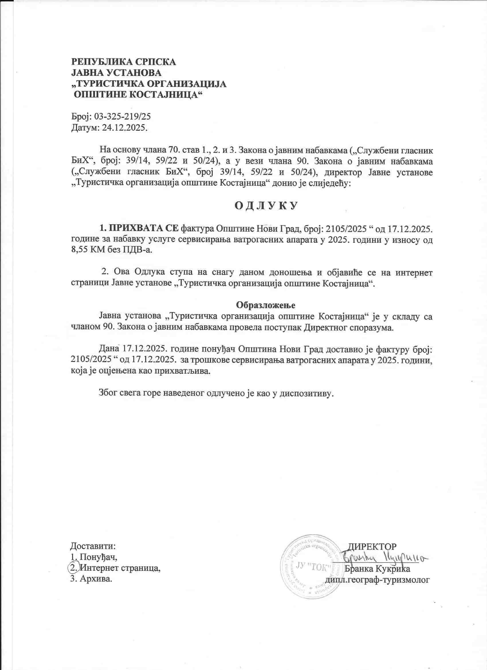 Одлука о прихватању понуде – ТР ДАНДИ КОМЕРЦ